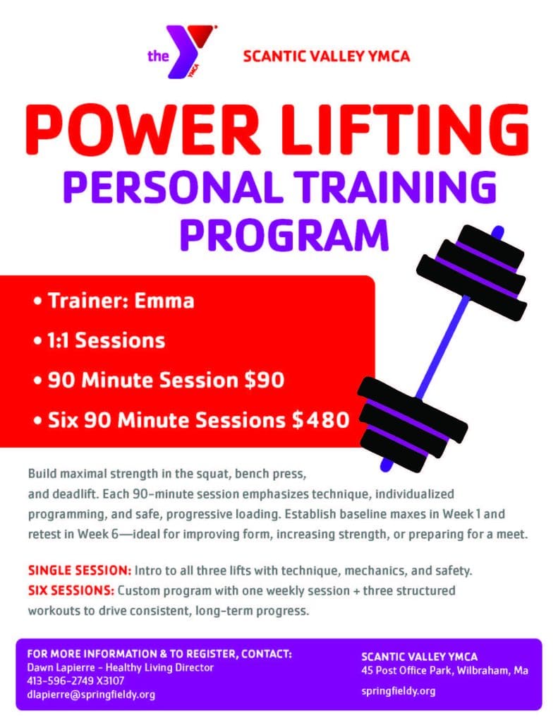 Powerlifting Personal Training at the Scantic Valley YMCA is officially here, offering structured, one-on-one coaching focused on the three core power lifts: squat, bench press, and deadlift. This program is built for anyone looking to improve technique, increase strength, or prepare for a powerlifting meet — without guesswork.